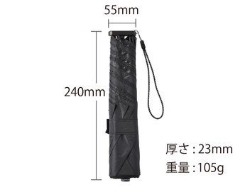 たたんだときの厚みは約23mm。バッグのすき間に入る折りたたみ傘です。