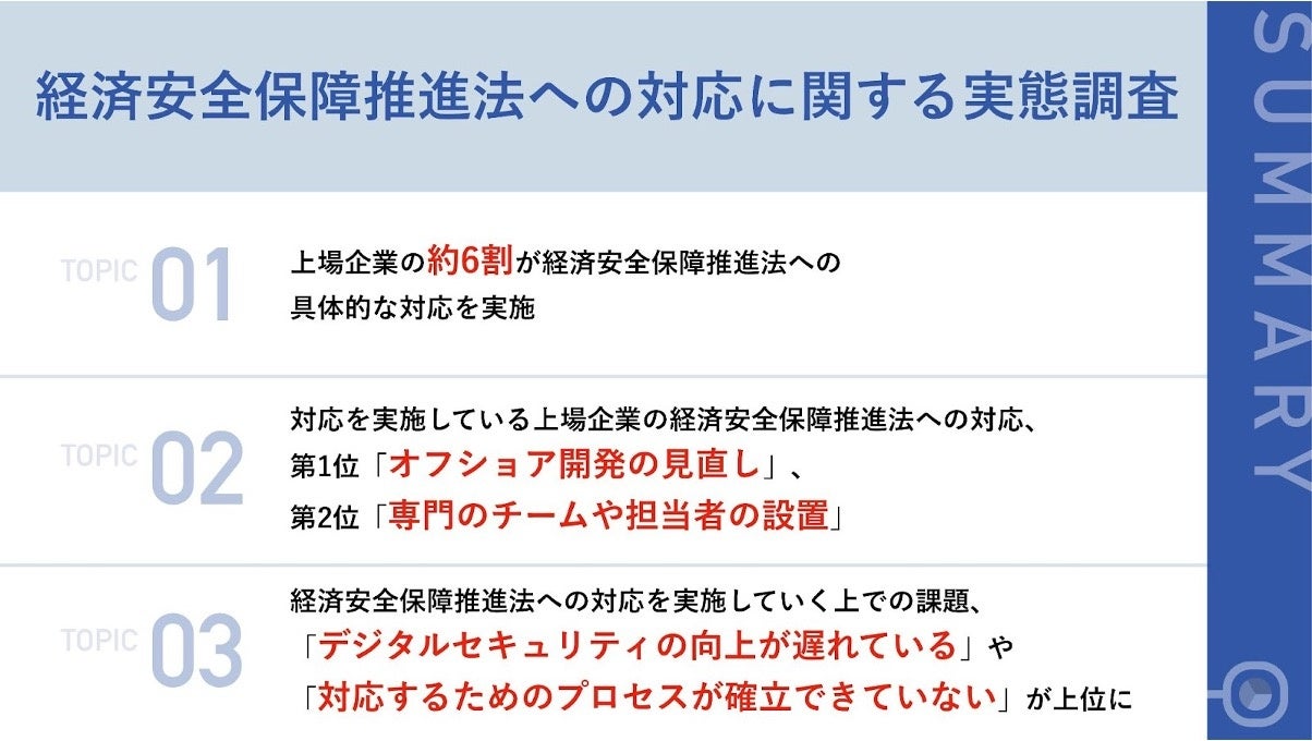 【上場企業に聞いた!「経済安全保障推進法」への対応の実態】約6割が対応を実施、「オフショア開発の見直し」や「専門のチームや担当者の設置」など具体案も