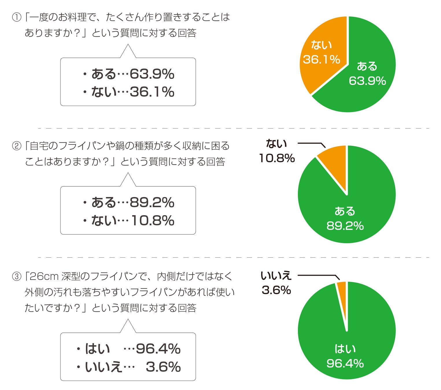 また、商品化にあたっては率直に皆さまの希望するものを作りたいと考え、SNS で当社をフォローしていただいているお料理好きな方を対象に「皆さんが使っているフライパンについてのお悩みや希望を教えて欲しい」というテーマで、改めてアンケート調査も実施いたしました。