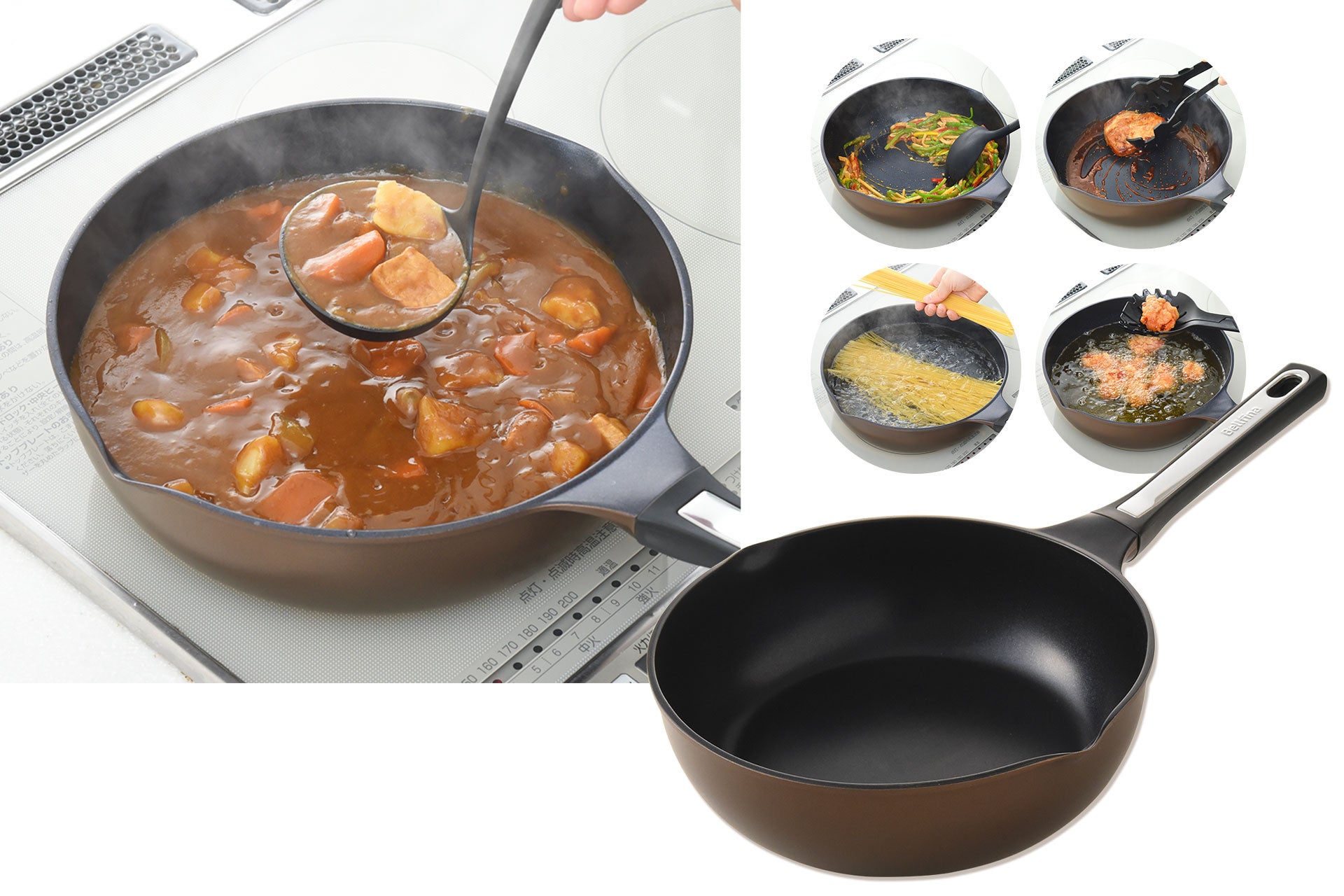 - 焼く、炒める、煮る、茹でる、揚げる ぜんぶができる、こだわりの詰まったフライパンが生まれました