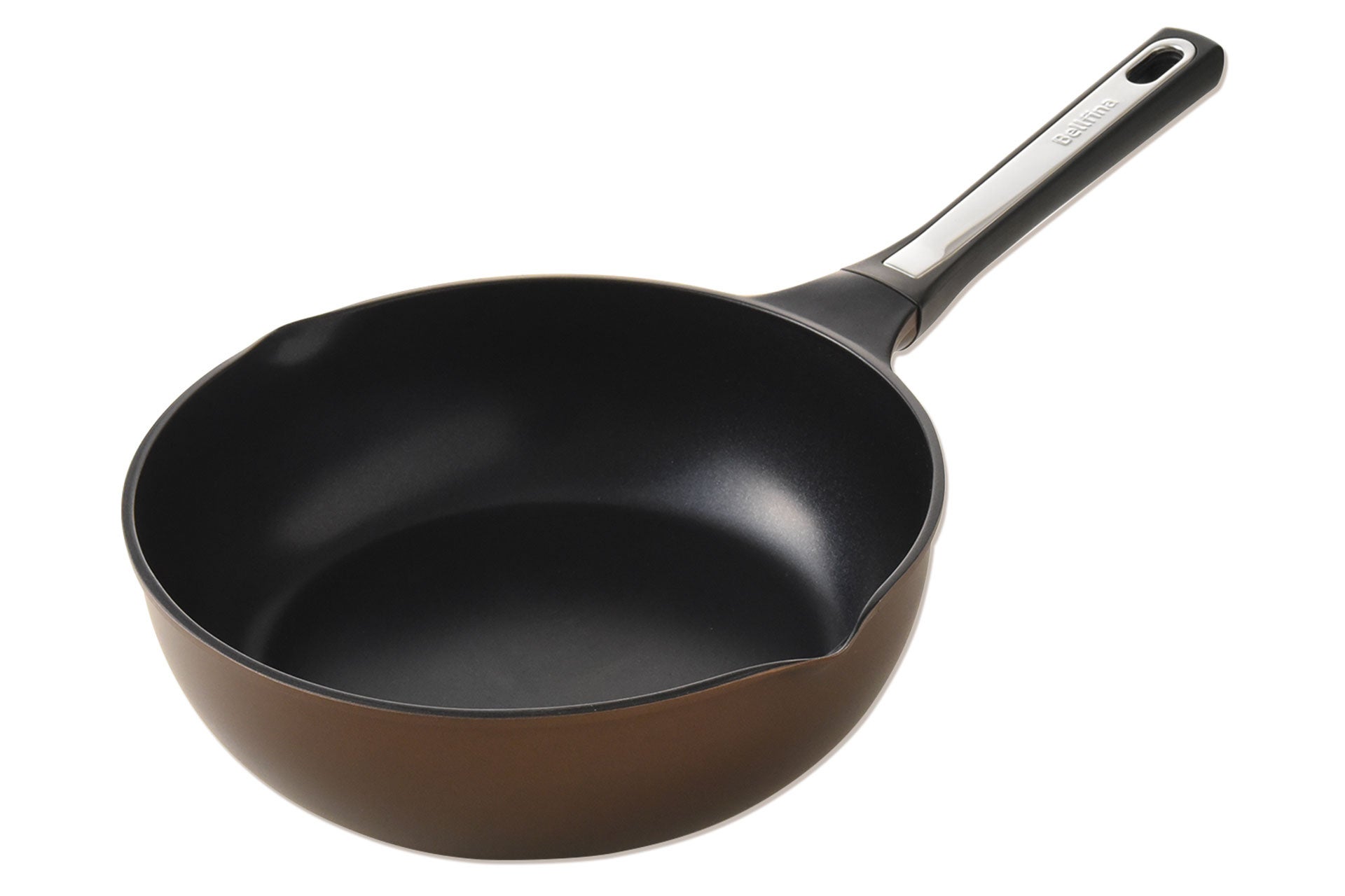 4:内側は耐摩耗性試験を200 万回クリアしたベルフィーナ独自の新開発した特殊コーティングを施し、食材が焦げ付きにくくお手入れもラクラクです。外側もふっ素コーティングを採用しているので、油汚れもスルッと落ちます。