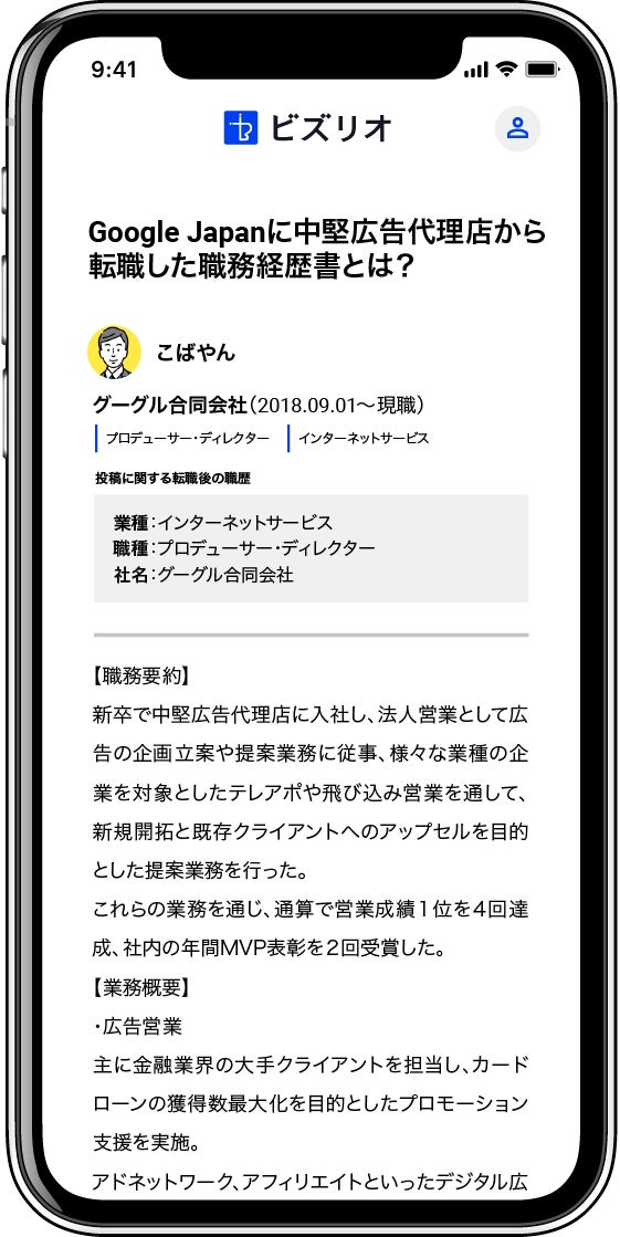 「ビズリオ」は、自分が経験した唯一無二のキャリア経験談・ノウハウを気軽に投稿し、キャリアや転職のヒントが欲しい人に共有するサービスです。