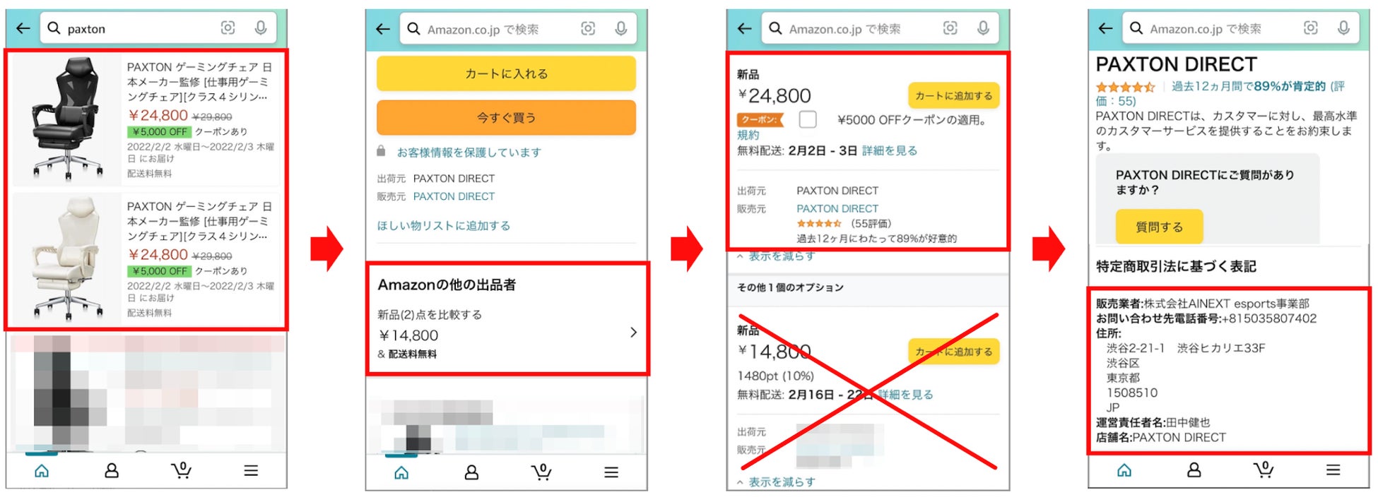 この度、Amazon内において、当社とは異なる、転売を目的としたと思われる非正規の販売事業者が、通常の販売価格と比較して大幅に値下げした金額を提示しながら販売を行っている事例が、『PAXTON』の「仕事用ゲーミングチェア」において確認されています。