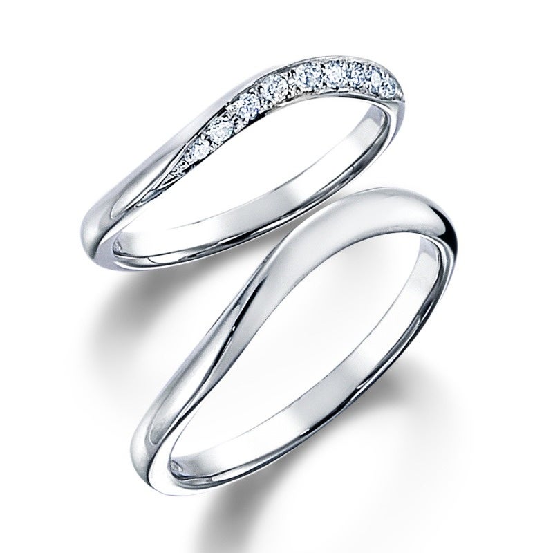 指馴染みの良いウェーブラインの結婚指輪。