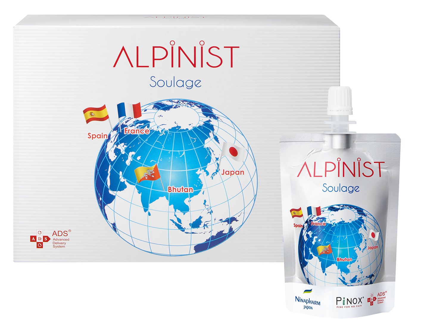 アルピニスト スラージュはニナファームがオフィシャル・スポンサーを務める高山施設「ルフュージュ・デュ・グーテ」(標高3,835m)を訪れるアルピニストたちの協力を得て極限環境における身体のコンディションをリサーチし、その研究成果をもとに開発した独自の発酵由来成分「パイノックス」を配合したサプリメントです。