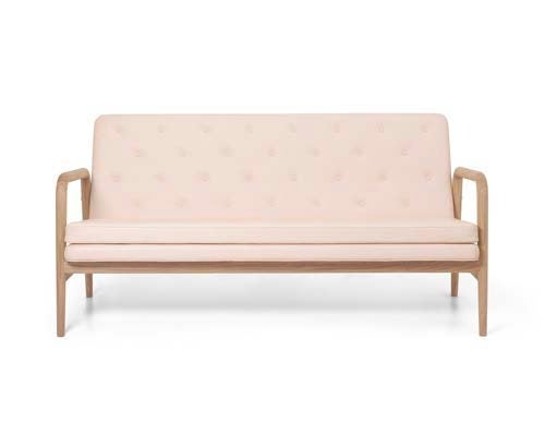 Foyerシリーズは、ベンチ、ソファ、ラウンジチェアで構成され、オーク材のフレームと、まるで空間に浮かんだような布張りの座面や背もたれの個性的な組み合わせが特徴的です。張地は、ファブリックまたは丹念に仕上げられてたレザーから選択可能です。手作りのボタンを配した座面と背もたれを張る際には、手間のかかる精密な職人技が求められます。ソファと椅子のアームレストと脚は、3つの部品を組み立てたもので、継ぎ目が目立たないよう細心の注意が払われ、手作業で磨かれています。軽快で華奢な彫刻のような印象でありながら、デザインの中核を成すのはソフトな座面と背もたれであり、快適さは全く損なわれていません。