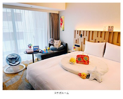 「産前産後ケアホテル ぶどうの木 都シティ 大阪本町」では9月22日宿泊分より先行して予約を開始します。このルームには新生児期から使用できる電動ベビースウィング、各種バスアイテムなどを設置。