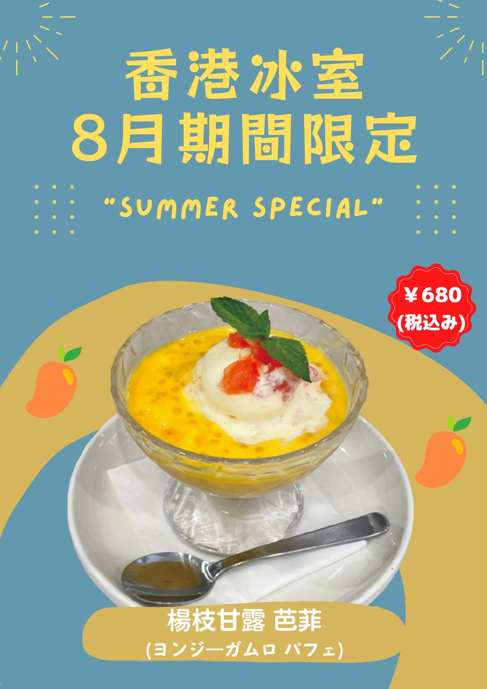 東横線・学芸大学駅【香港冰室(カフェ)】8/3(水)から期間限定スイートメニュー登場!