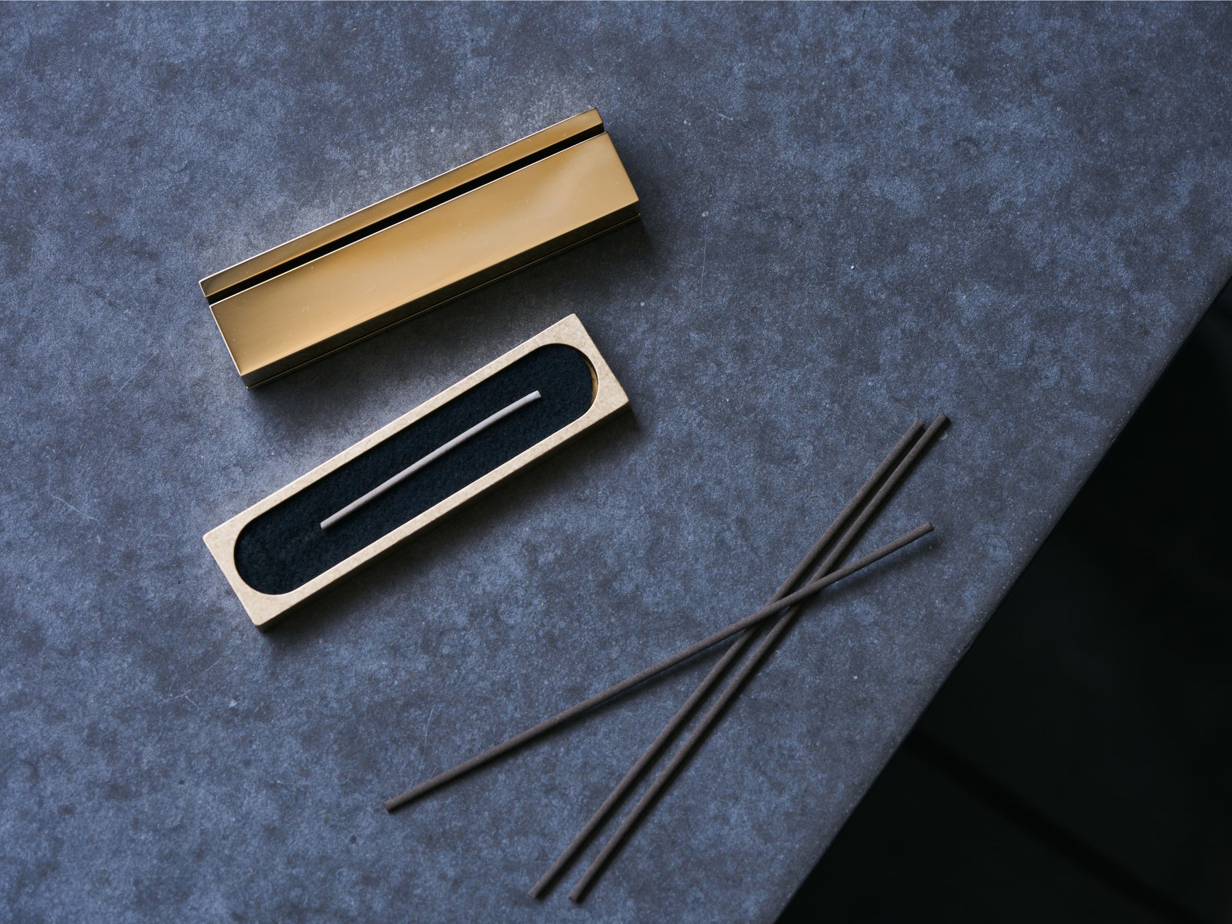 直線で構成されたフォルムと香煙とのコントラストが特徴的。真鍮のモダン香炉「efu(エフー)」が「2022年度グッドデザイン賞」を受賞