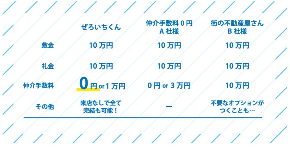 「ぜろいちくん」の仲介手数料は、0円もしくは税込み1万円です