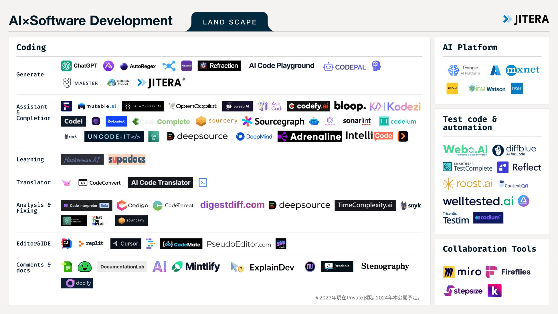 Jitera、エンジニア向け「AIを使用したソフトウェア開発サービス」のカオスマップを公開