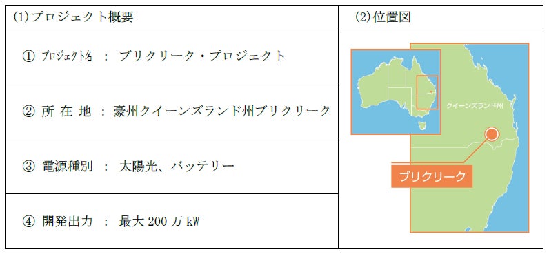 電源開発株式会社(以下「Jパワー」、本社:東京都中央区、代表取締役社長 社長執行役員:菅野 等)は、Genex Power Limited社(ジェネックス パワー リミテッド、以下「Genex社」)との間で、豪州Bulli Creek(ブリクリーク)地点における太陽光発電・バッテリープロジェクト(以下「ブリクリーク・プロジェクト」)の事業権益の50%を取得する共同開発契約を締結し、合わせてGenex社に対して3,500万豪ドルの融資を行う契約を締結しました。