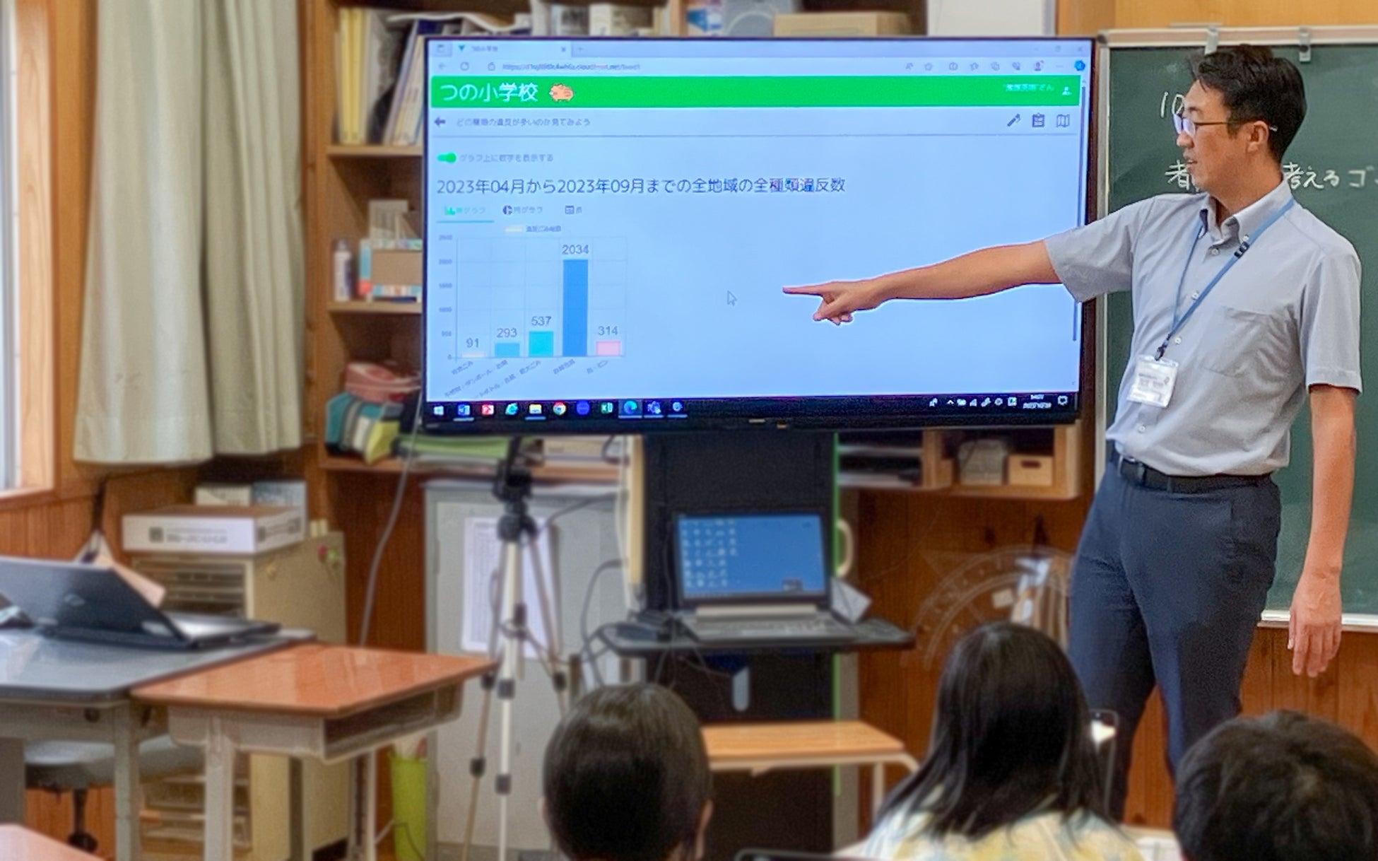 小学生と共にデータを分析し、家庭ごみ分別の違反削減を促進