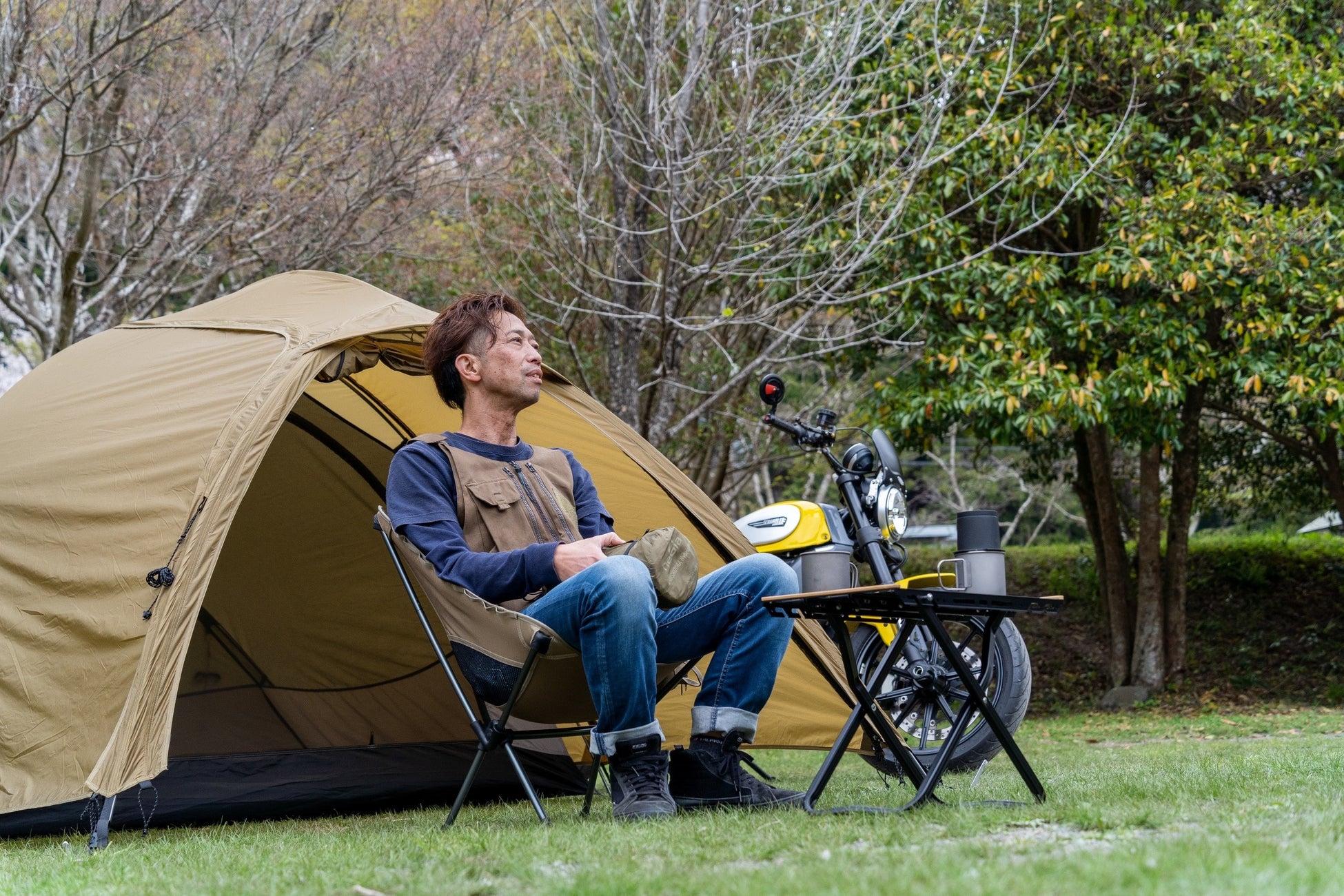 その過程において、ライダー向けアウトドアブランド「DAYTONA OUTDOOR SUPPLY」を2018年に立ち上げ、キャンプ用品をリリース。ツーリンググループの扱うアイテムのひとつとして、キャンプの楽しさをライダーに伝える一歩を踏み出しました。そして2023年4月「DAYTONA OUTDOORS」としてリブランディングし、これまで以上により本格的なアウトドアブランドとして生まれ変わり、ライダーの方のみならずアウトドアを楽しむ方に使っていただけるような商品を随時開発、販売を進めてまいります。