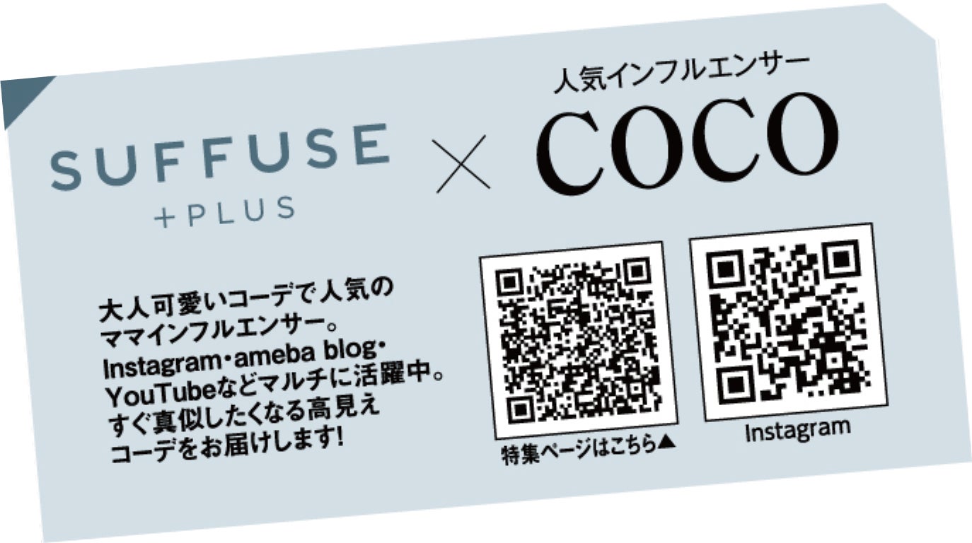 「SUFFUSE(サフューズ)」が、Instagram、ameba blogやYouTubeなどでマルチに活躍する、大人可愛いコーデで人気のママインフルエンサーCOCOさんとのコラボ商品を発売。