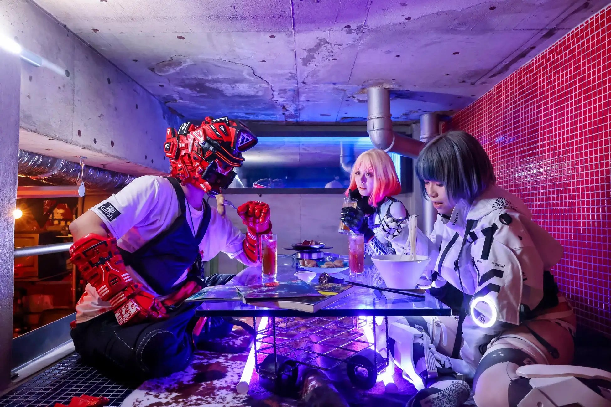 『NEO新宿アツシ』は、アニメや映画のSF作品に登場する荒廃した世界に存在するRestaurant & BARをイメージしたお店です。鮮やかなネオンライトに照らされた店内、独特な雰囲気の中で、特別な食事と共に現実とは異なる次元の体験を楽しむことができます。
