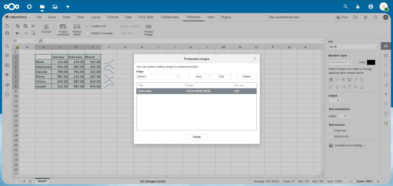 スプレッドシート内の保護された範囲オプションでは、ユーザーがさまざまな権限でアクセスを許可したり、コンテンツの変更を完全にブロックしたりすることができます。これにより、データセキュリティをより細かく制御できます。