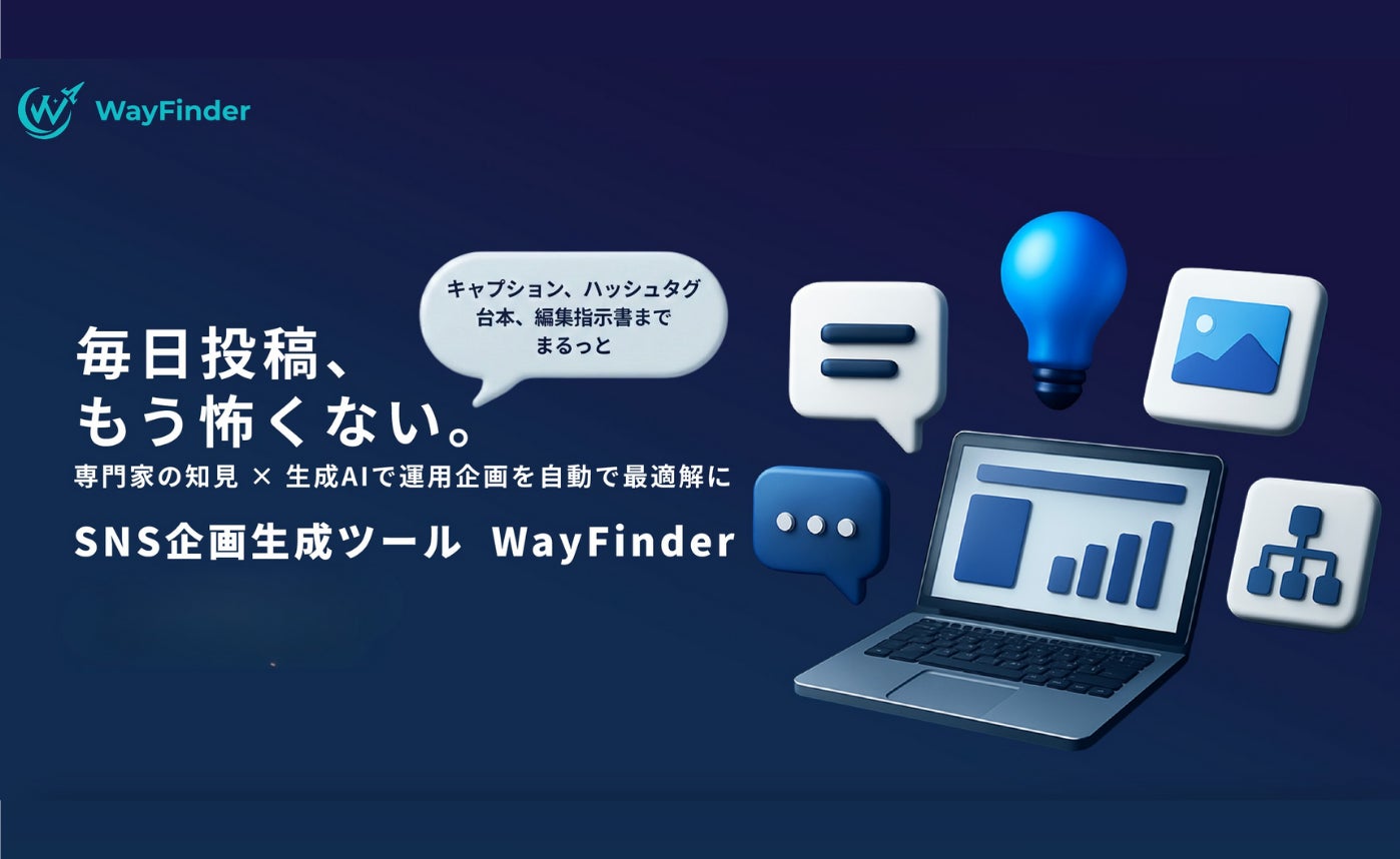 WayFinderは、SNS運用における「企画・台本・構成案・キャプション」等の作成をAIが自動化する実務特化型のAIツールです。