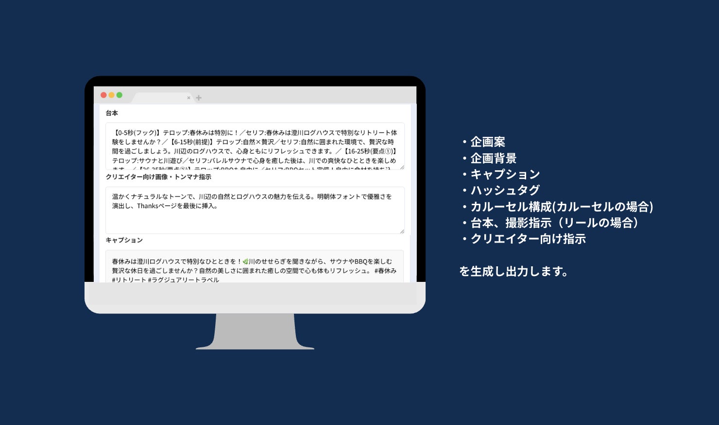 特徴: 最小限の入力で、プロの視点を再現した高品質な投稿構成を出力。