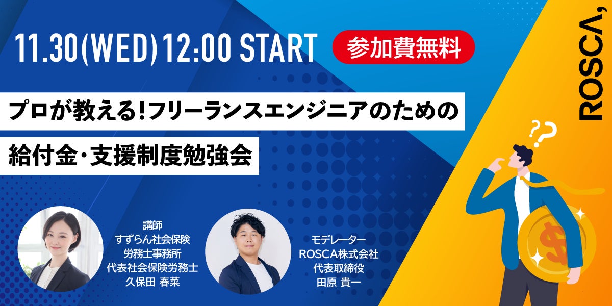 エンジニア専門エージェントROSCA株式会社、 フリーランスエンジニアのための給付金・支援制度勉強会を実施