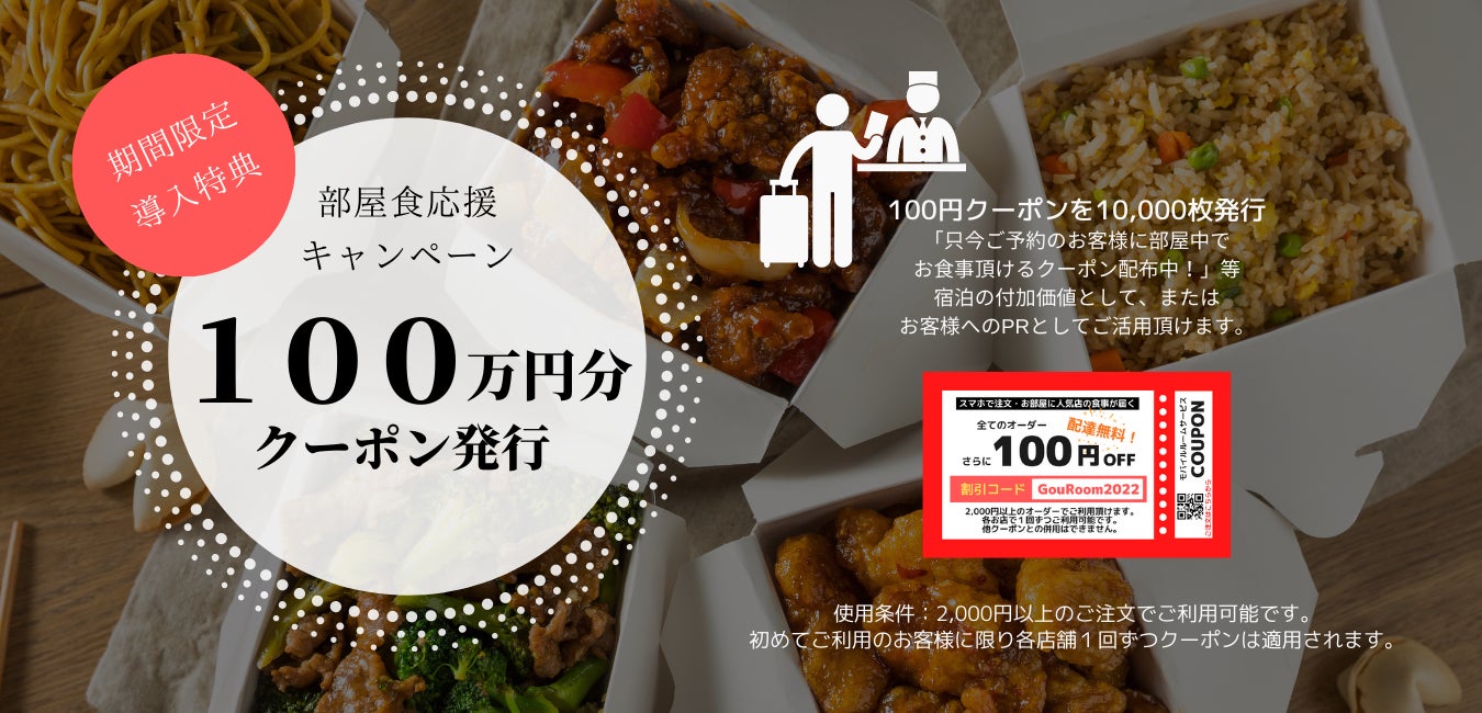ホテル専用ルームモバイルオーダーシステム【GouRoom(グルーム)】が宿泊特典等で活用できるクーポン100万円分進呈キャンペーンを2022年2月1日より実施