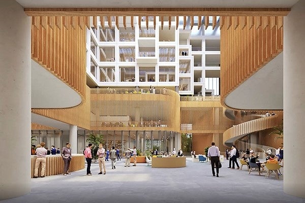 ワーカーにとって快適な空間を演出するため、施設中央部のアトリウムを囲むように配置されたラボからは、周辺の公園や川を見渡せます。