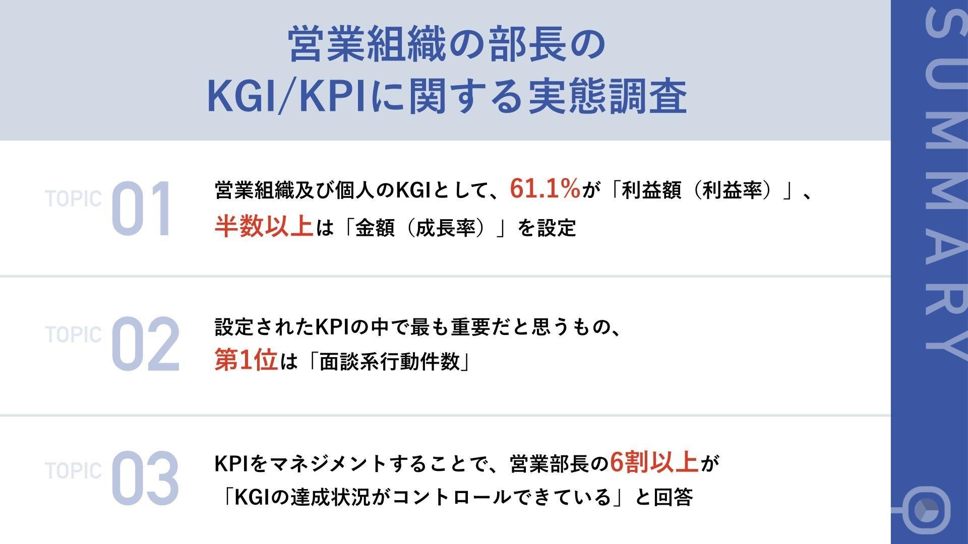 【売上を伸ばしている営業組織の実態とは】KGIの設定として「利益額」が最多の61.1% 営業部長が選ぶ最も重要なKPIは「面談系行動件数(訪問面談、オンライン面談、来社面談など)」