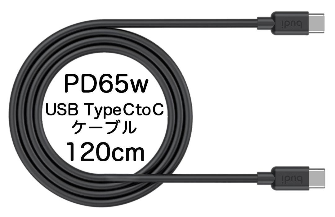 本体に繋げる付属のUSB TypeCtoCケーブルはPD65Wの高速転送!長さも使いやすい120cmで充電時は勿論、ケーブル単体としてもしっかり使えるので、様々なシーンできっと役立つでしょう。