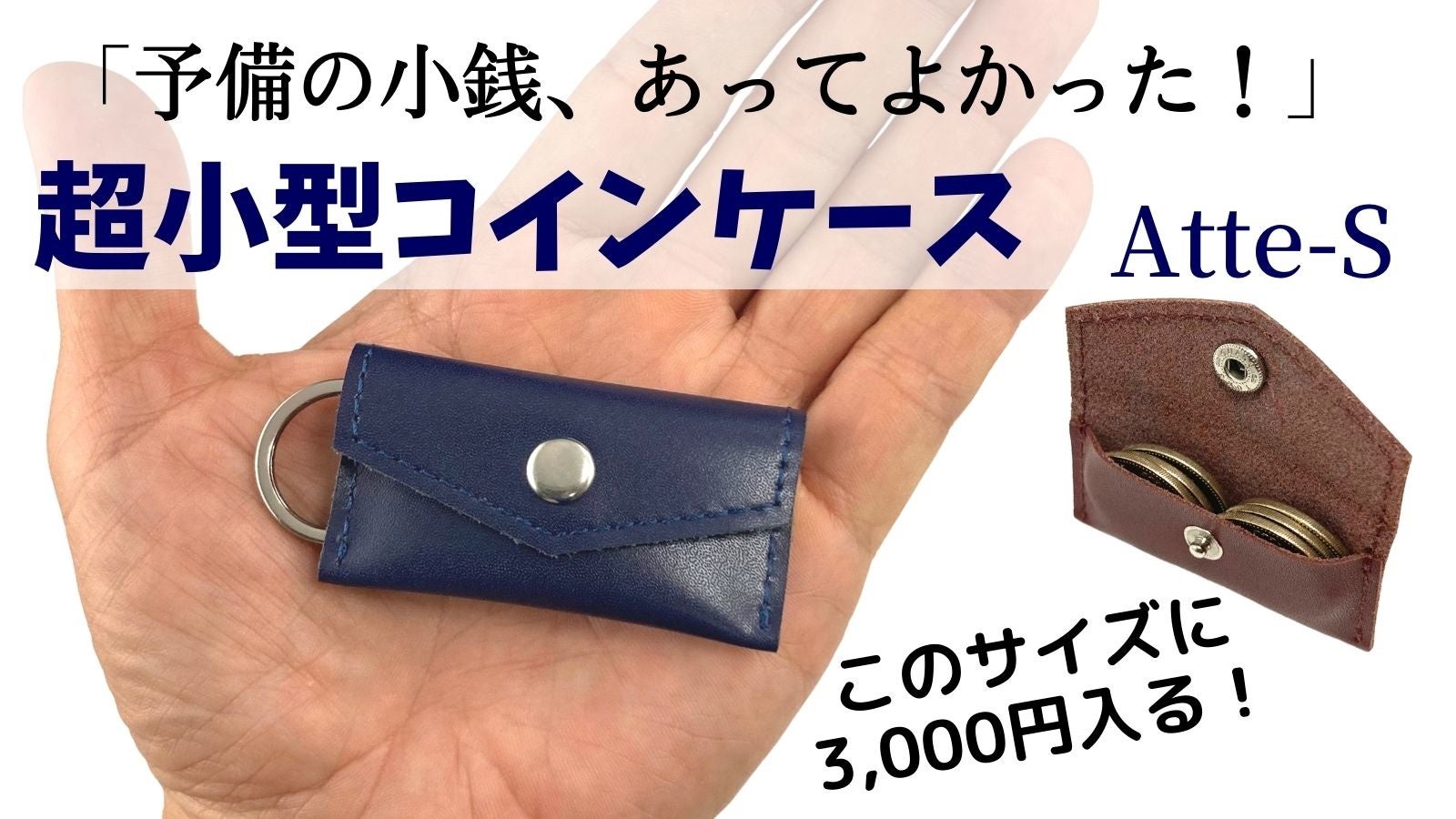 昨年のMakuakeプロジェクトで多くの方に応援購入いただいた極小財布「Atte」が、さらに小さくなったコインケースです。