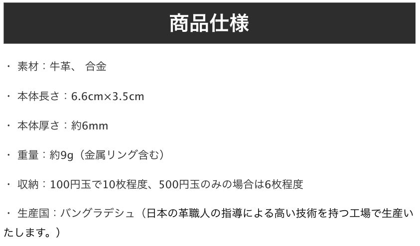 ✔️ マネークリップ派の予備の小銭として