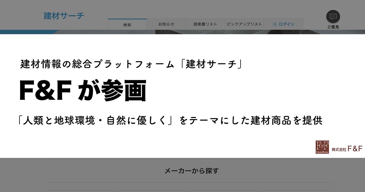建材情報の総合プラットフォーム「建材サーチ」にF&Fが参画