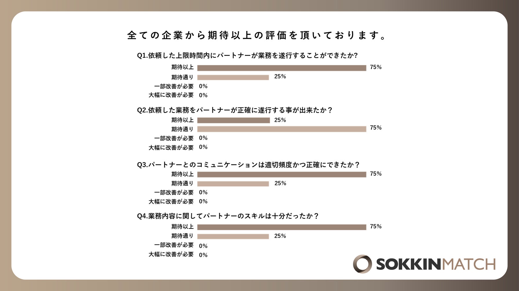 また毎月実施している企業からパートナーのへ業務対応に関する評価アンケートでは常に高い満足度を継続して評価頂く事が出来ております。(※4)