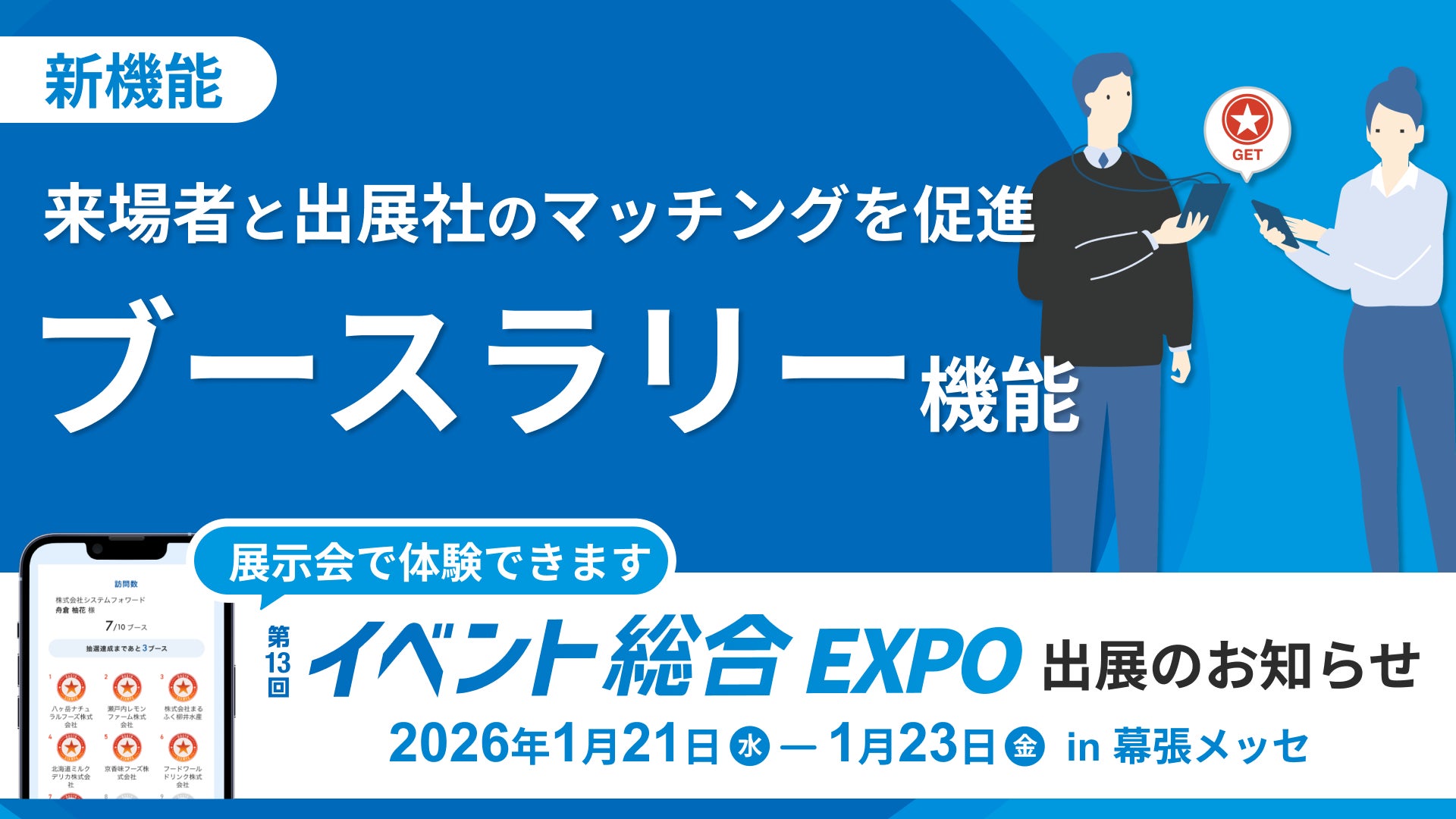 2026年1月21日(水)〜23日(金)開催の『第13回イベント総合EXPO』にて、ブースラリーのデモ体験をご用意しています。