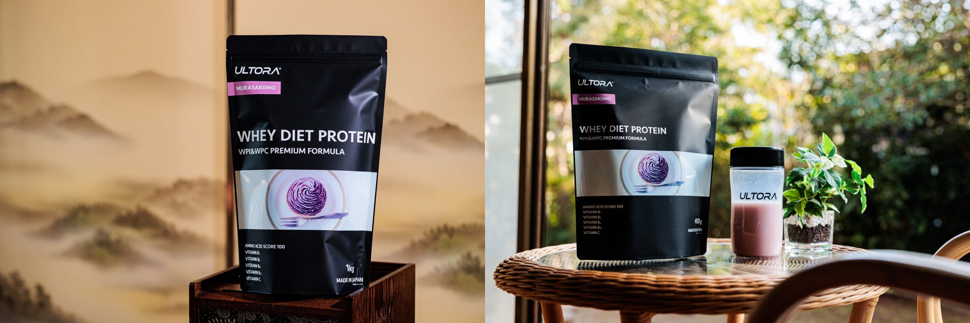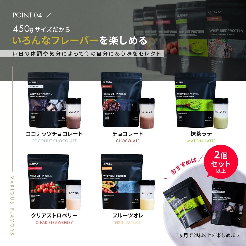 ホエイプロテインを展開する株式会社ULTORA(本社:東京都恵比寿、以下弊社)は、公式オンラインストアにて2月25日(金)よりホエイダイエットプロテイン「紫芋風味」と「ほうじ茶ラテ風味」を新発売します。(1㎏税込み価格:¥4,790 450g税込み価格:¥2,890