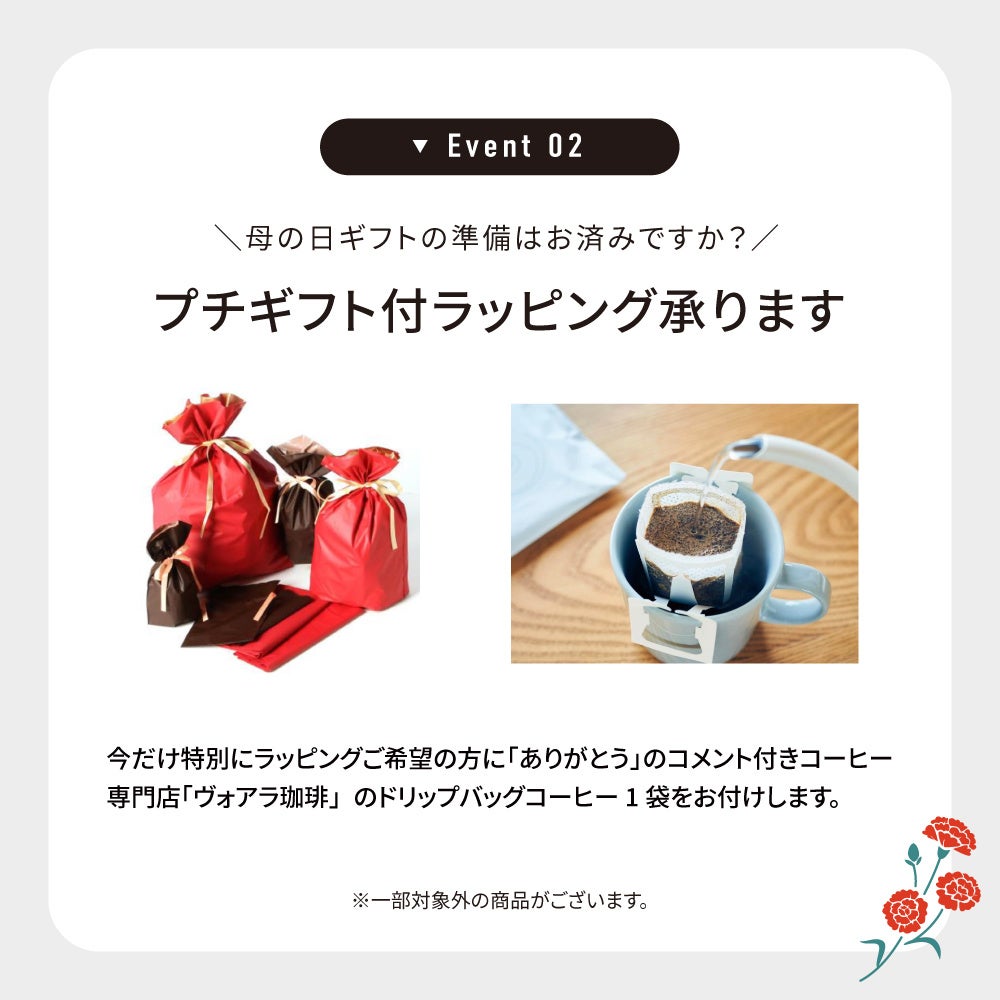 母の日ギフトラッピングを対応します。(一部対象外)