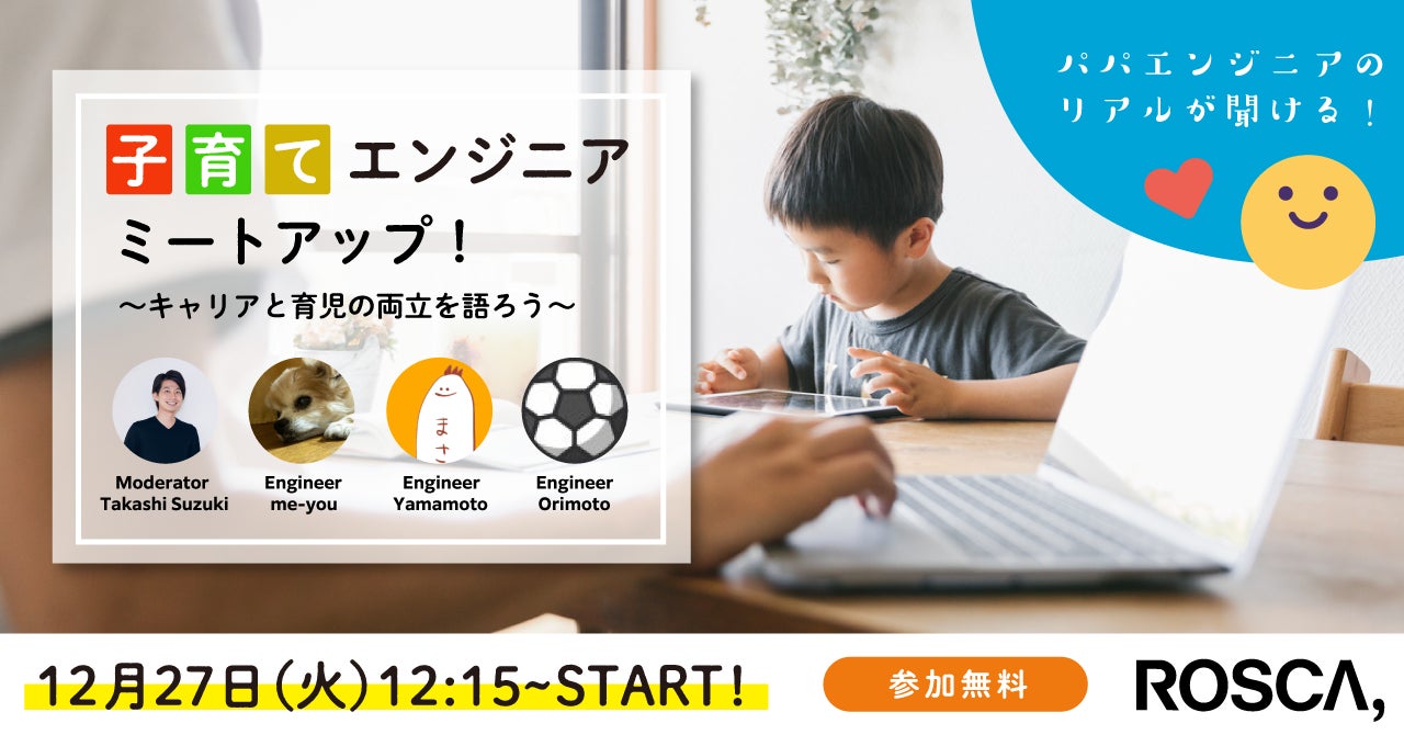 雇用形態に囚われない働き方「シームレスキャリア」を提唱するエンジニア専門エージェントROSCA株式会社(以下、当社)では、現役子育て世代のパパエンジニアを招き、子育てとキャリアの両立について語るオンライントークイベントを実施いたします。