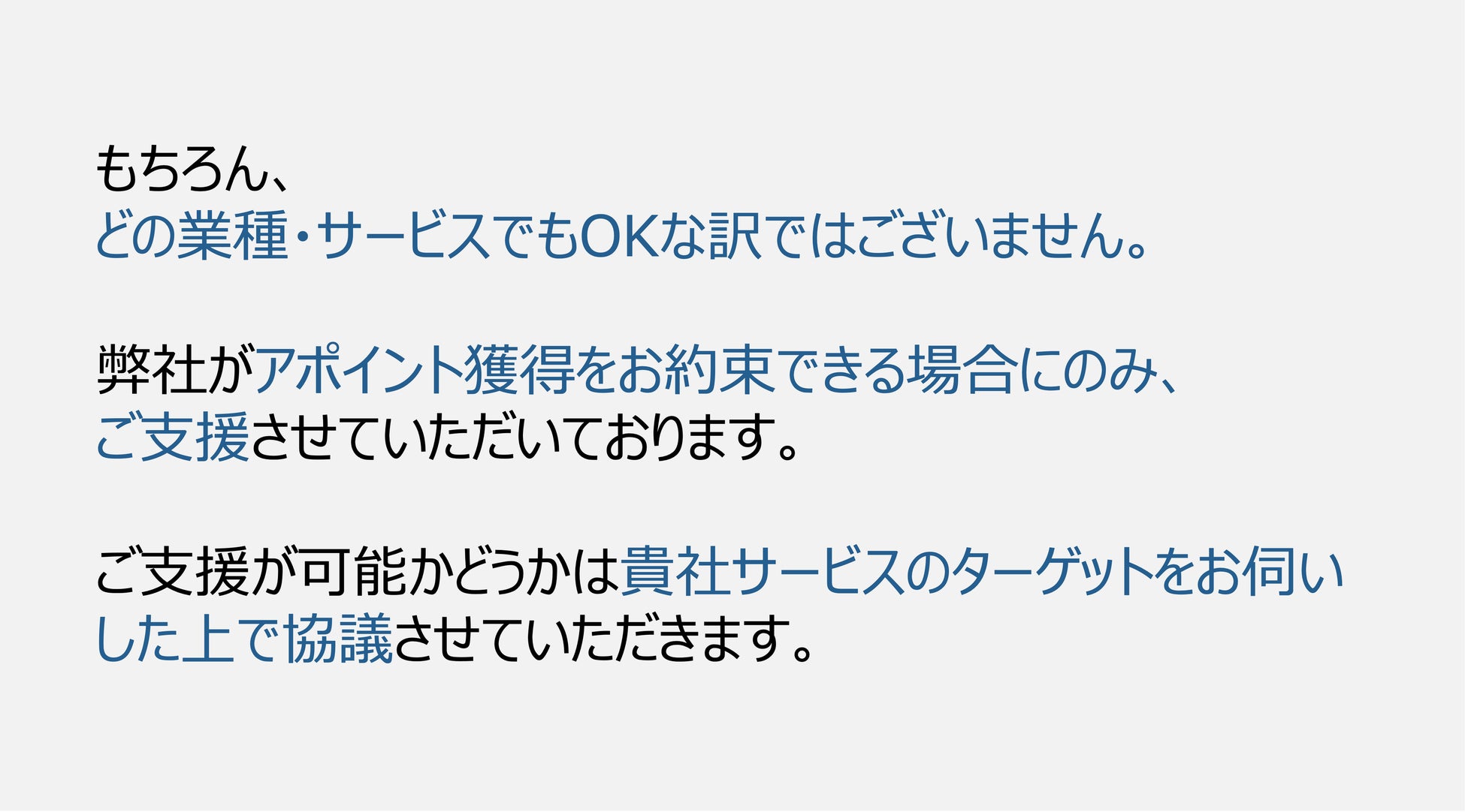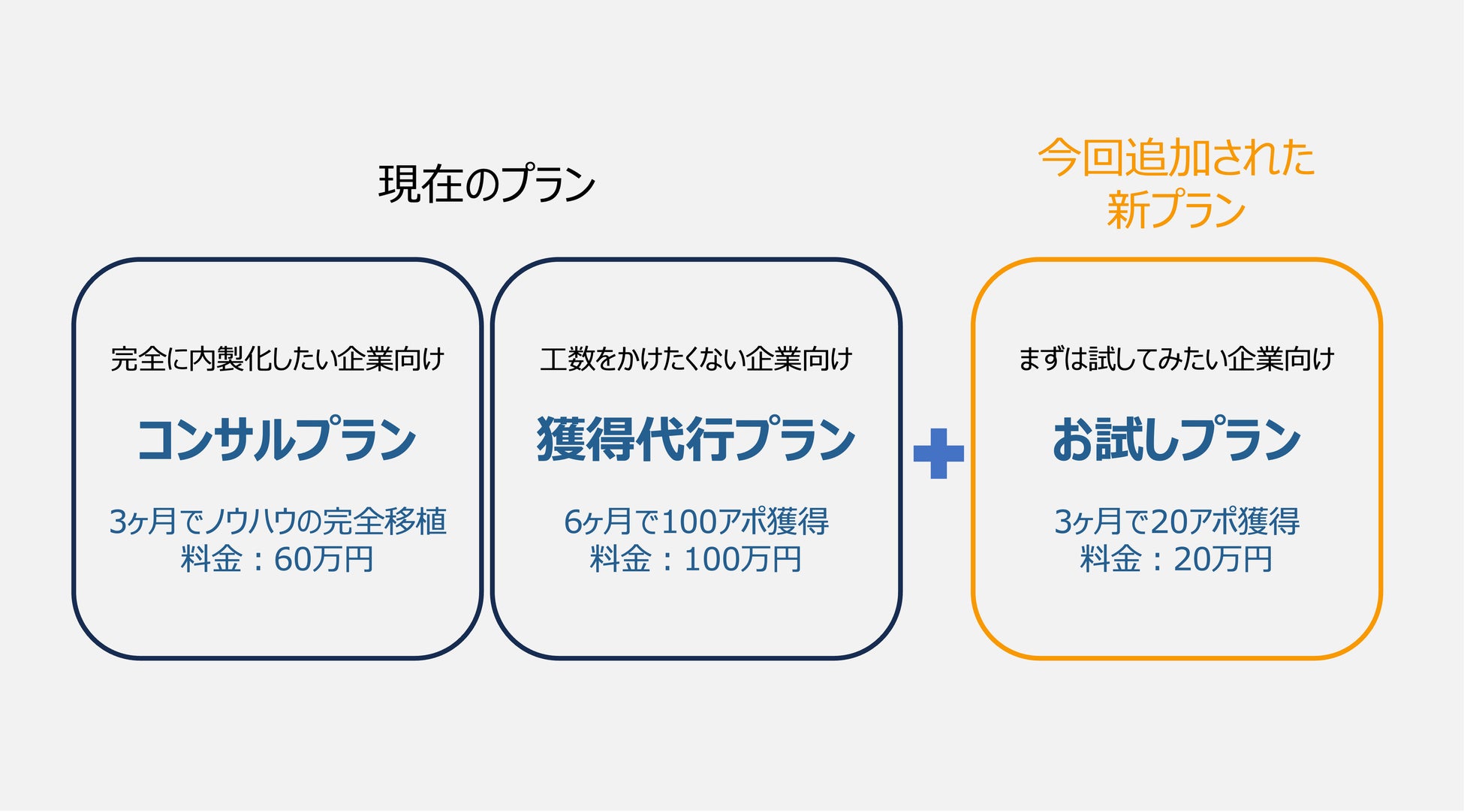 【支援期間3ヶ月、アポイント20件、20万円】のお試しプランを展開いたします。