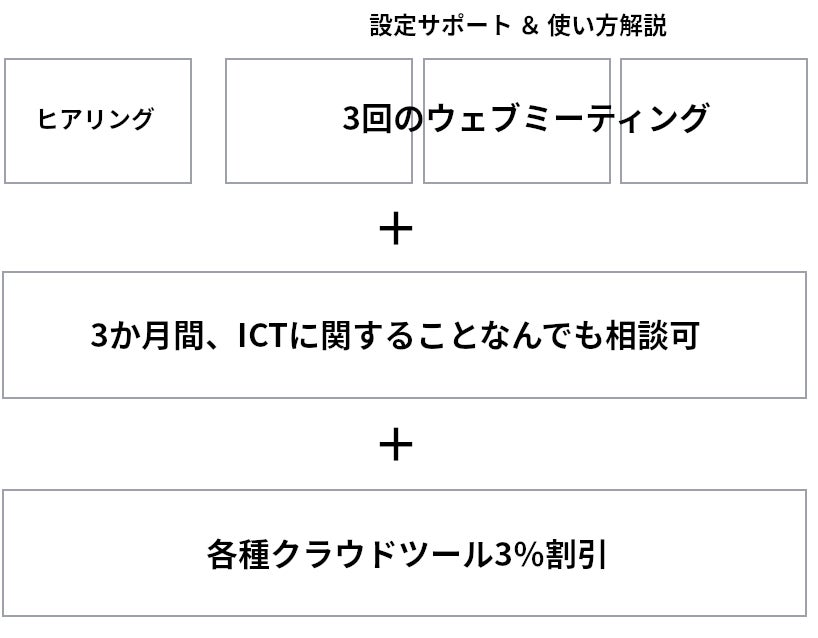 以下のサービスについて開業時ICTサポートご契約の方に3%割引で販売します。