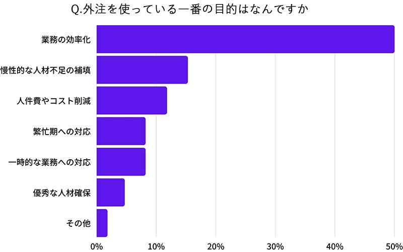 外注を利用する目的は、5割の企業が「業務の効率化」と回答