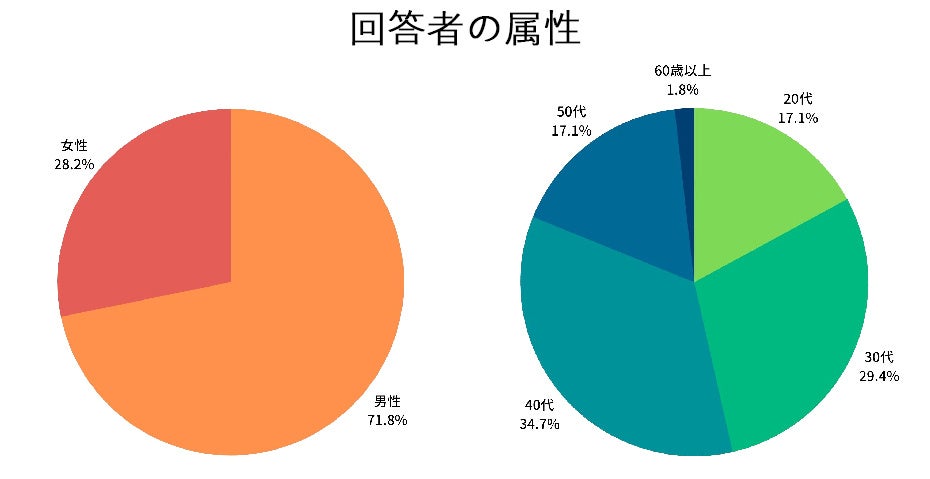 20代:29人(17.1%)、30代:50人(29.4%)、40代:59人(34.7%)、50代:29人(17.1%)、60歳以上:3人(1.8%)