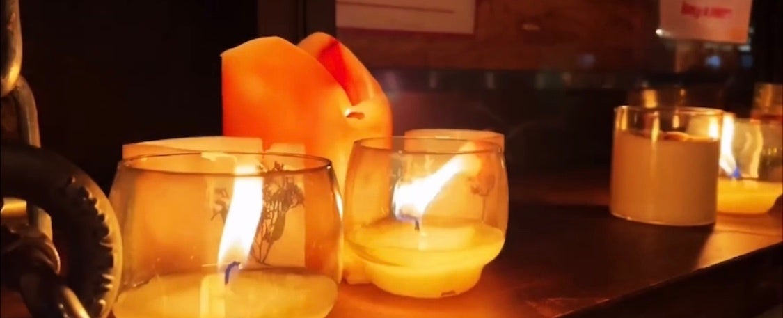 クリスマスツリーやキャンドルがキッチンカーに並び、クリスマスのムードや雰囲気を作ります。