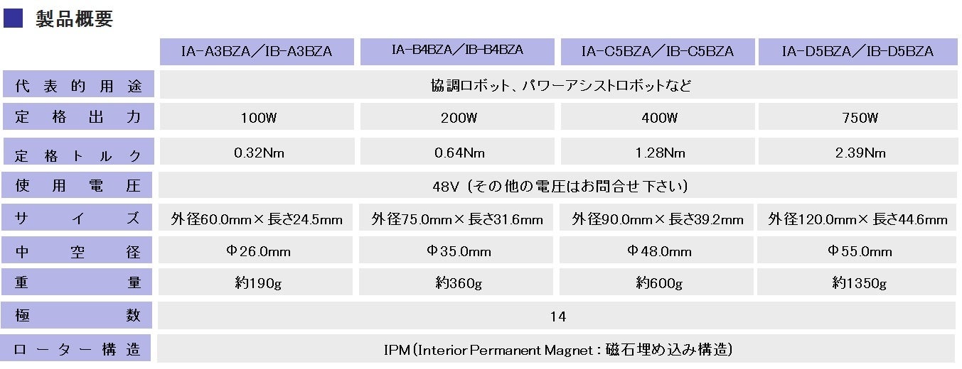 協調ロボットの各関節に最適な径・出力を選択できる4製品をラインナップ