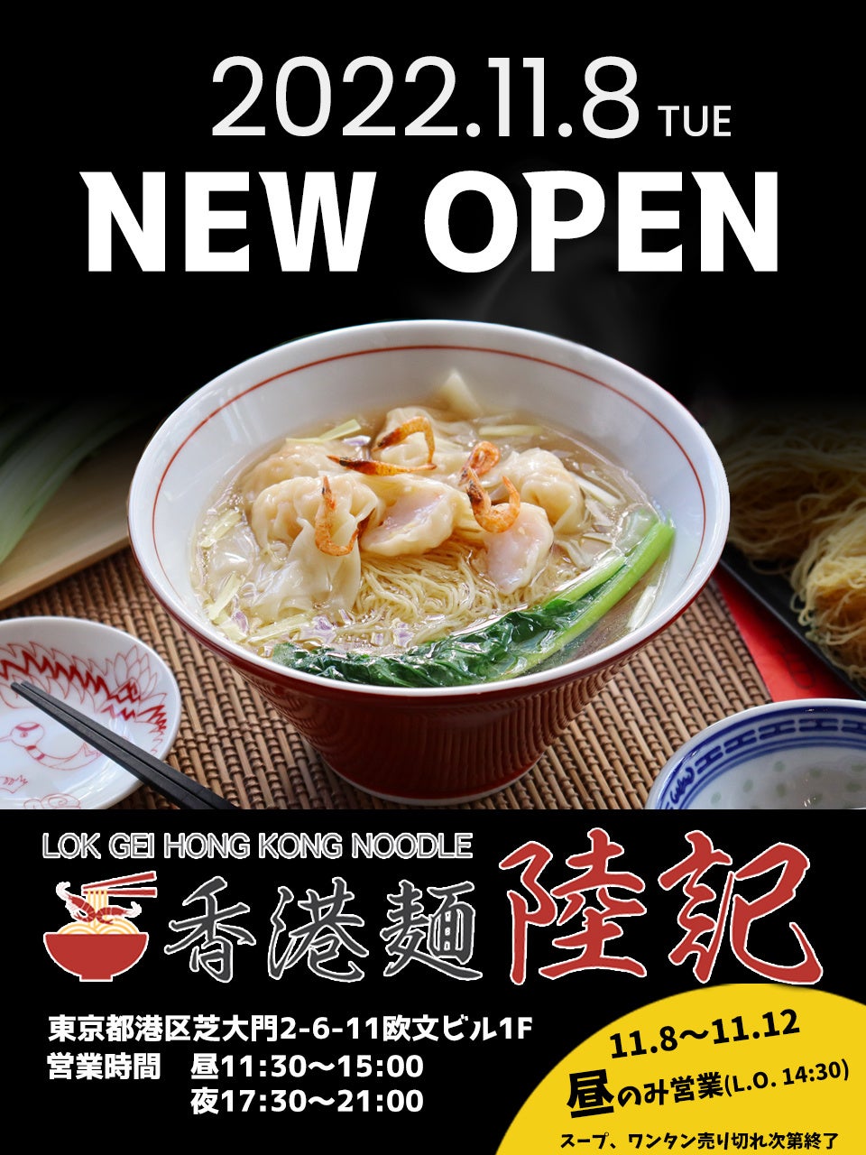 【11/8 OPEN!】香港ワンタン麺専門店〈香港麺陸記〉東京都港区に上陸