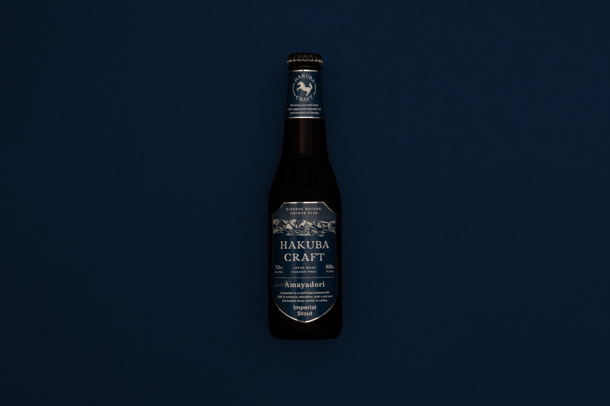 クラフトビールのスタイルはインペリアルスタウト。成分にはリラックス効果を高めるCBDや白馬村内で焙煎したてのコーヒーを配合し、ゆったりとした時間を一緒に楽しむチル・クラフトビールに仕上げました。