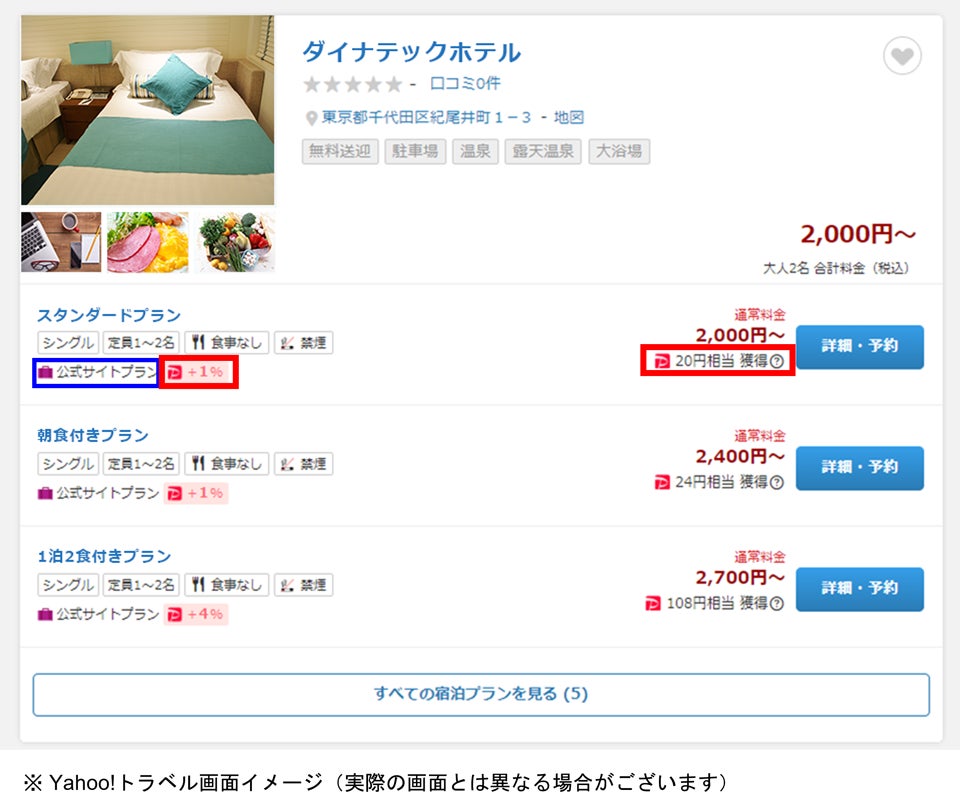 ヤフー株式会社(本社:東京都千代田区、代表取締役社長:川邊 健太郎)の提供するインターネット旅行予約サービス「Yahoo!トラベル」にて、2022年4月1日より公式サイトプランでの予約時にPayPayポイントが獲得できるサービスを開始するにあたり、ダイナテック株式会社(本社:東京都千代田区、代表取締役社長:堀内芳洋)の提供する宿泊予約システム「Direct In S4(ダイレクトインエスフォー)」のメタサーチ連携サービス「D-RISE」にてYahoo!トラベル経由で予約の際にPayPayポイント付与対象となります。