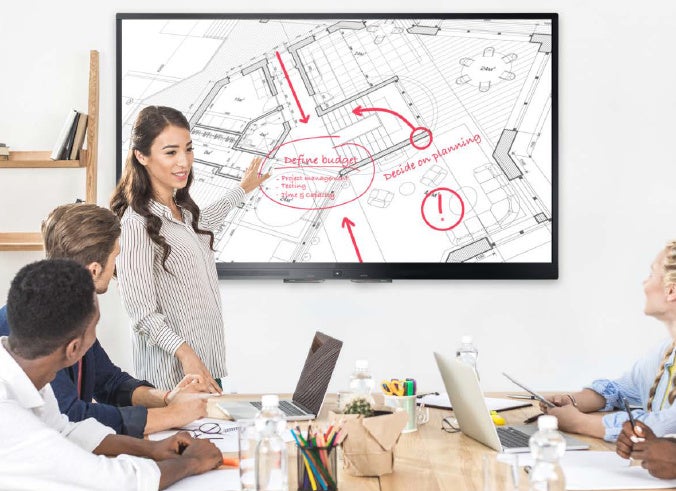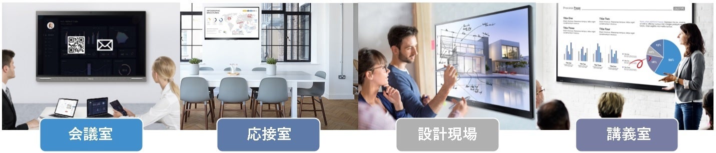 電子黒板機能・タッチパネル・無線ミラーリングという広範囲に活用できる機能を搭載したレグザの業務用ディスプレイ。手軽に導入しやすい価格帯と初心者にも使いこなしやすい仕様が特長です。特に、オフィスや事務所などにおいては、従来のホワイトボードやプロジェクタからの置き換え事例が多数あり、文教向け小教室にも適しています。