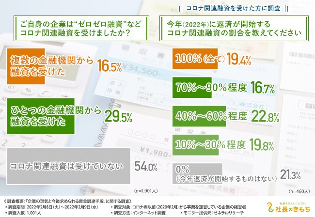 株式会社社長のきもち(本社所在地:東京都新宿区、代表取締役:大森 俊一)は、コロナ禍以前(2020年2月)から事業を運営している企業の経営者を対象に、「企業の現状と今後求められる資金調達手段」に関する調査を実施しました。