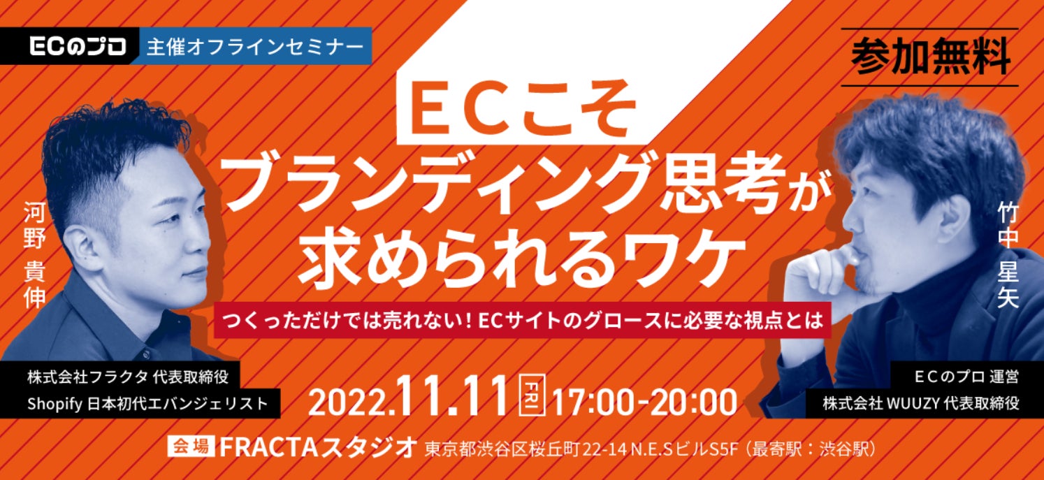 【11/11(金)17:00】無料セミナー『ECこそブランディング思考が求められるワケ〜つくっただけでは売れない!ECサイトのグロースに必要な視点とは~』を開催