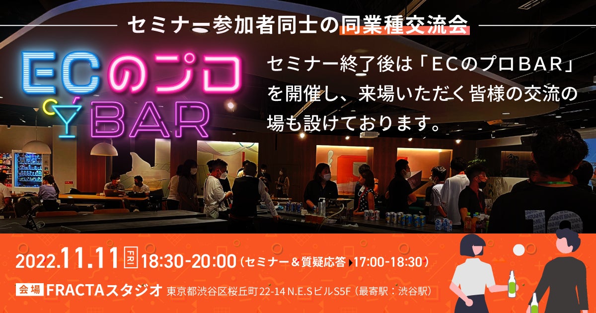 開催日 :11月11日(金) 17:00~20:00 ※18:30〜20:00は「ECのプロBAR (交流会) 」を開催いたします。