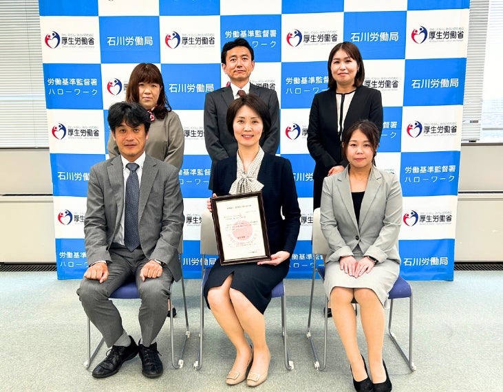 この認定は、女性活躍推進法に基づいた行動計画の策定・届け出を行った企業のうち、女性活躍推進に関する取り組みの実施状況が優良な企業を厚生労働大臣が認定する制度です。認定項目5項目のうち4項目の基準を満たし、2024年4月25日、2つ星(2段階目)に認定されました。同年5月21日に石川労働局にて認定通知書交付式が開催され、石川労働局長 八木 健一氏から認定通知書が授与されました。